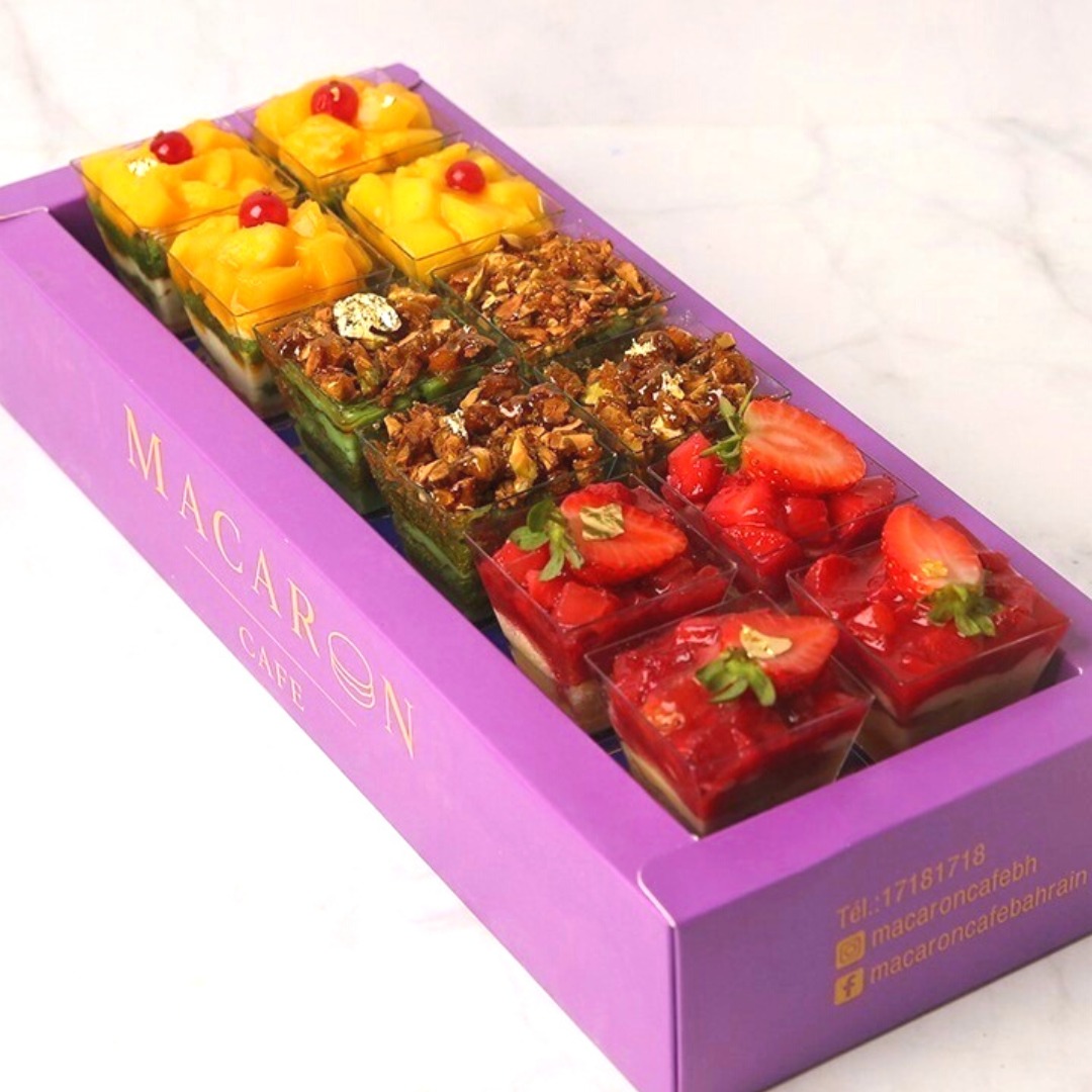 1 Dozen combination of 2 flavours: Fruity Vanilla Creme Brulee, Mango Float, Pistachio Mango, Tiramisu, Chocofudge, Pistachio Brulee
