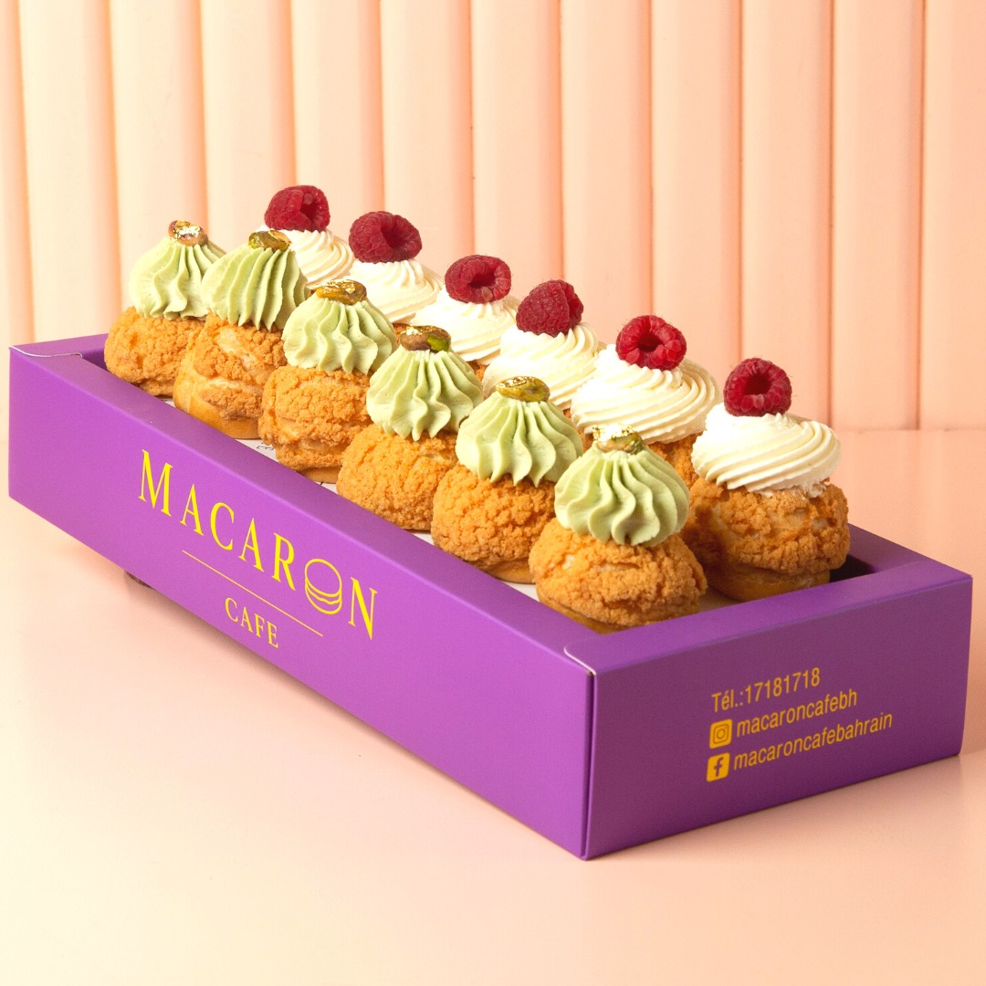 1 Dozen of Choux Buns with your favourite flavor: Pistachio, Raspberry, Hazelnut or Mango