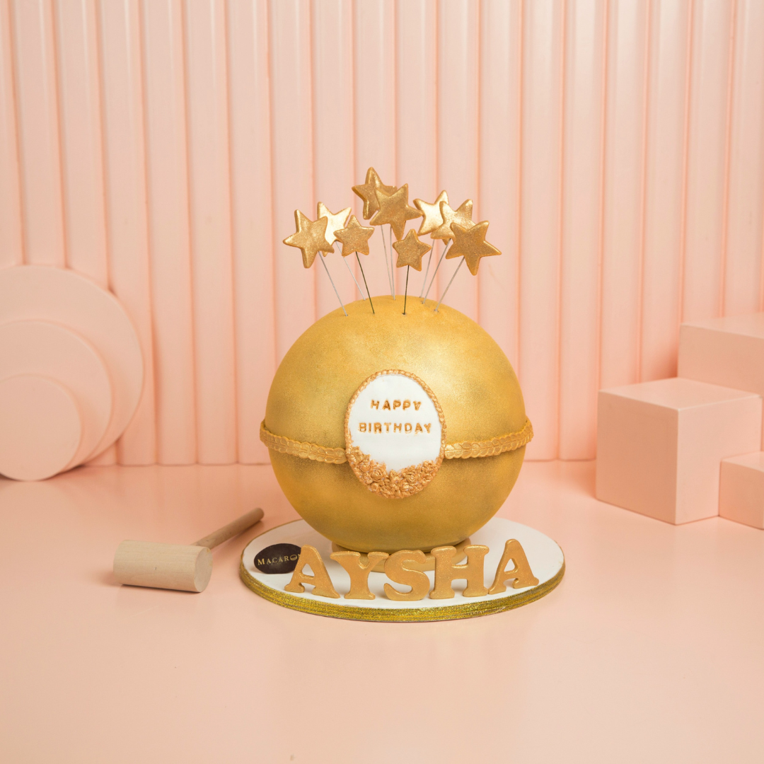 1kg cake with your choice of flavor : Fruits, Moist Chocolate or Red Velvet inside a chocolate ball.