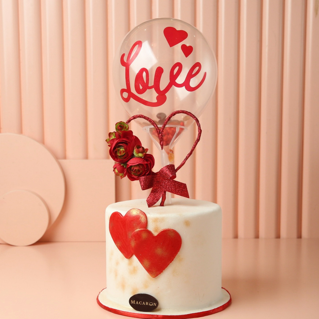 Decorated POP balloon with 1 Kg of your favourite cake flavour: Fruits, Red Velvet or Chocolate