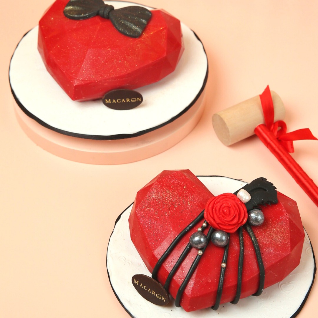 Heart shape cake with your choice of flavor: Red Velvet, Chocolate or Fruits